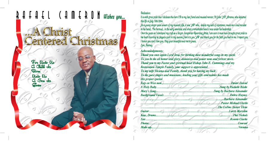 CHRIST CENTERED CHRISTMAS is a music CD cover label for a gospel and Christmas music album. This is the third album cover I've designed for this artist.